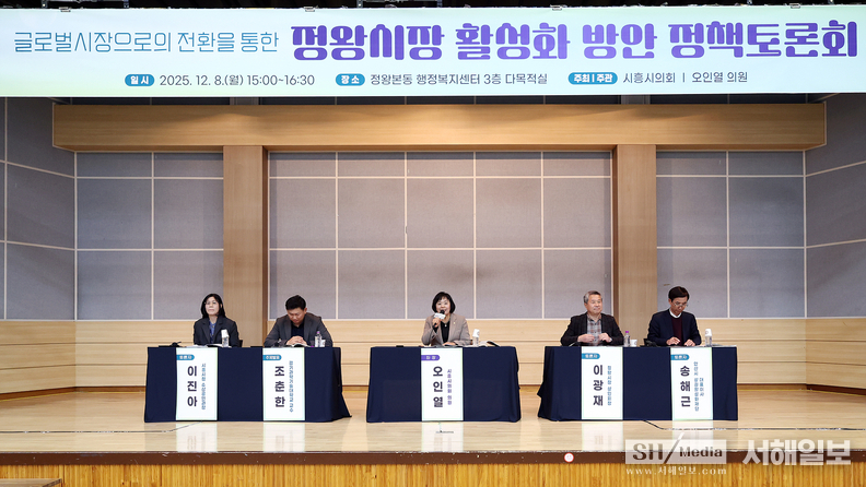 시흥시의회(의장 오인열)가 12월 8일 정왕본동 행정복지센터 3층 강당에서 ‘정왕시장 활성화 방안’을 주제로 정책토론회를 성공적으로 개최했다.
