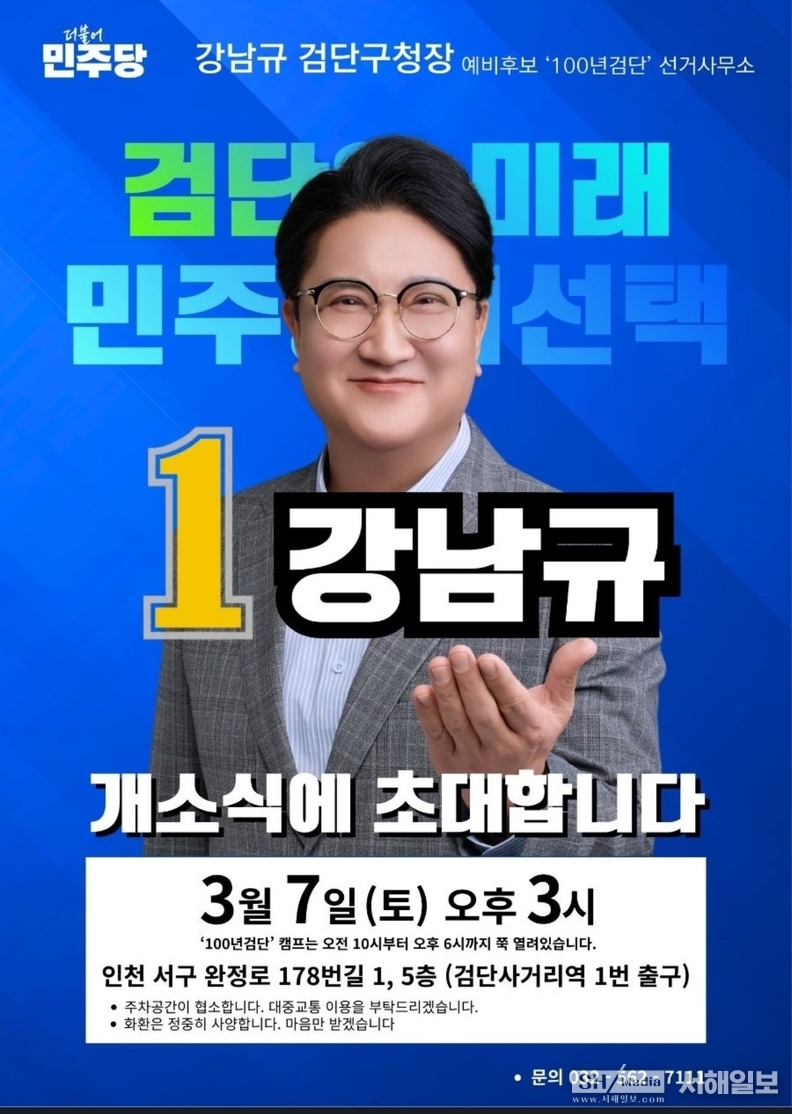 또한 강 후보는 오는 3월 7일(토) 오후 3시, 선거사무소 개소식을 열고 주민들과 함께 본격적인 선거 행보의 출발을 알릴 예정이다.