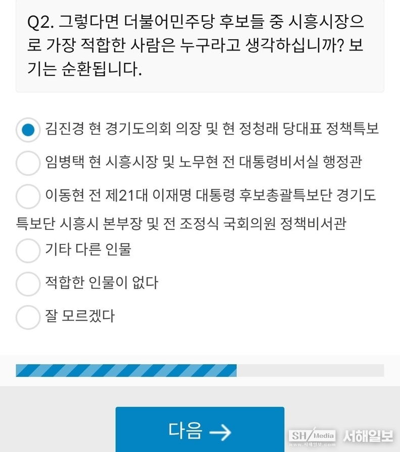 하지만 본지 취재 결과, 실제 설문지에는 시흥(을) 기반의 이동현 예비후보 측과의 사전 협의 없이 이후보도 포함되었던 것으로 밝혀졌다.