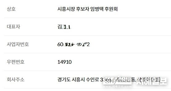 2018년 5월 16일, 임병택 당시 시장후보는 신천동 삼미시장 앞 삼영아트빌 5층에 선거사무실 개소식 행사를 치른후 7일 후인 23일 K씨는 임후보 선거사무실을 주소로하는 '시흥시장 후보자 임병택 후원회/대표자 K00)' 란 이름으로 사업자 등록을 개설하여 운영했다.