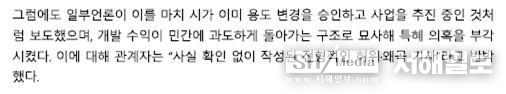 기사의 문맥으로 보면, 입장을 밝힌 사람이 시흥도시공사 관계자임은 확실한 것 같은데, 사장인지 아니면 개발기획실 관계자인지?